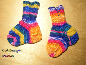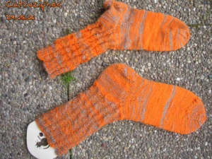 Fertig sind sie – die Socken aus der Wolle, die ich in Hechingen gesponnen habe. Die Wolle hat die Firma Tutto zur Verfügung gestellt und gegen eine Spende konnte man diese schöne Wolle erwerben. Aus meinem Probegarn habe ich nun diese Socken gestrickt. ( Aus dem Rest wird irgendwann einmal der Ersatzklaralund für mein Schwesterchen.)Sie hat die Bedingung, einen Ärmel selbst zu stricken, akzeptiert.
