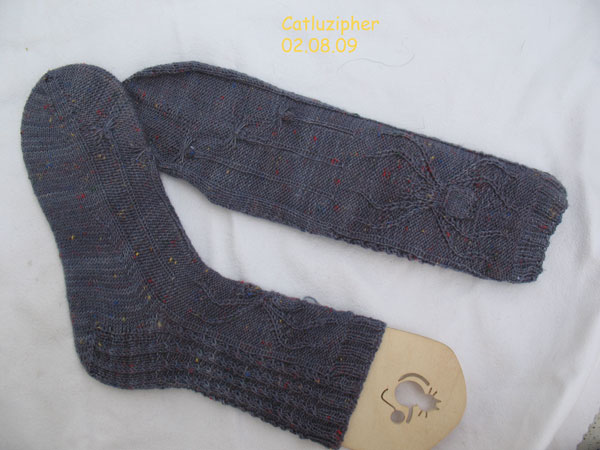 Ich fand die Socken so cool, dass ich sie unpedinkt stricken musste und dafür auch gleich den tweetigen Drachenwollstrang opferte, den mir meine Nachbarin mitbestellt hatte.