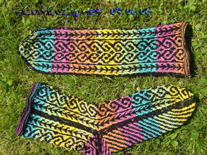 habe ich Zeit, unter anderem Zeit für besondere Socken. Mein Papa mag ja besonders bunte Socken und so sind diese Socken für ihn Weihnachten entstanden. Ganz fasziniert hat er mir beim Stricken zugeschaut und gemeint, solche hätte er auch gerne mal…. Weihnachten ist ja erst in einem guten halben Jahr und bis dahin hat er diese Socken sicherlich vergessen. Und sie gingen recht fix von der Hand unter anderem deswegen, weil ich mal wieder 2 Stunden beim Doc warten durfte, um dann zu erfahren, dass ich morgen bitte nochmal kommen solle.. *örks* Naja, es sind ja Ferien und ich habe ja Zeit…..