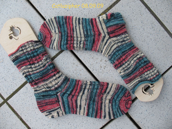 Und die Wolle – nun ja, das eine ist ein Bestandteil meiner Schatzkiste gewesen. Ein richtiger Rödeltiger ist das und für die Socken interessant ist, dass die beiden Knäuele in unterschiedlicher Richtung gewickelt waren.