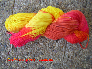 habe ich gestern mit Bekannten vom Eberbacher Spinnzirkel betrieben. Es war ein schöner Nachmittag im Freien mit viel Spaß, vielen schönen Farben, schönen Färbeergebnissen