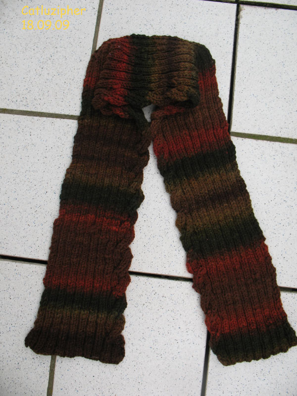 ein Traum war diese Wolle und verstricken ließ sie sich leider etwas zu schnell. So ist der Schal ein wenig kurz. Die Wolle ist im Ausgleich dazu einfach wunderbar weich und fasziniert mich mit den Farbverläufen. Damit der Schal nicht zu langweilig wird, aber dennoch der Farbverlauf zur Geltung kommt habe ich dem 2re 2 li – Muster einen Zopf über 8 Maschen an einem der Ränder spendiert.