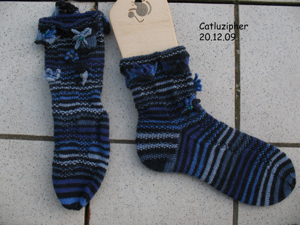 Die Idee zu den Socken kam mir beim Blättern in dem Buch: Knitting over the edge, in dem ich ja schon mehrfach fündig wurde.