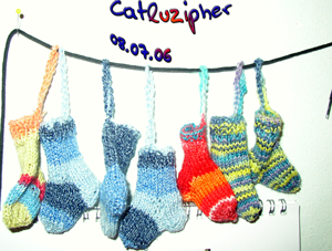 Und so nebenher habe ich die restlichen Minsocken für meine Schüler genadelt. Jeder hat dieses Jahr einen zum Geburtstag bekommen und das sind nun die letzten 7.