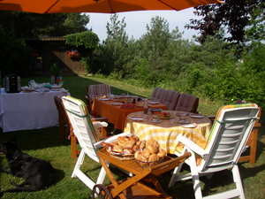 Den heutigen Tag wollten wir dann eigentlich ganz ruhig angehen – mit einem gemütlichen Brunch – aber da ein Teil der Verwandtschaft am eigentlich geplanten Grilltag keine Zeit hat, haben wir sie zum Brunch eingeladen. Mein Schatz hat versprochen, dass er es allein organisiert, was ihm auch (fast) gelungen ist. Es war dann richtig schön und gemütlich und der Tisch hat sich unter all den Leckereien gebogen.