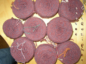 Und da dies ja eigentlich ein Strickblog ist, habe ich mal die Wolle für mein nächstes Großprojekt gewickelt. Seit letzter Woche ist der Rest des orange/ hellblauen Vlieses versponnen und nach der Wamatour nun auch wieder trocken. Matthias war so nett und hat fleißig mitgekurbelt.
