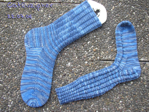 sind bei mir aus der Färbeleien – Swap – Wolle entstanden. Dafür habe ich die Vorgaben etwas meinen Größenverhältnissen angepasst. Die Wolle hat beim Verstricken richtig Spaß gemacht vor allem das Schwelgen in meiner Lieblingsfarbe. Leider ist viel von dem Muster in der Wolle untergegangen. Naja, dann genieße ich eben die Farben.