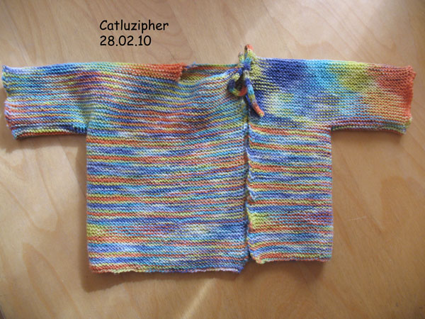 bis Lukas Geschwisterle sich auf den Weg machen sollte – auch wenn Lukas zur Zeit jeden Morgen fragt, ob das Baby rausgekommen ist. Aber ich hatte einfach Lust auf ein bisschen bunt und ein bisschen Kleinkruscht fürs Baby und das ist das Ergebnis: In meinen bescheidenen Vorräten fand sich ein wunderbar buntes Handgefaerbt.com – Knäuelchen aus einem Abo und das musste es dann sein. Die Jacke ist das selbe Modell wie bei Lukas, da ich sie schon damals sehr praktisch fand – Lukas Jacke aber bei seinen Sachen bleiben sollte. Nun wird Lukas Geschwisterle also mit diesem Jäckchen heimkommen – ja wenn es nicht gerade 30 C° hat oder so.