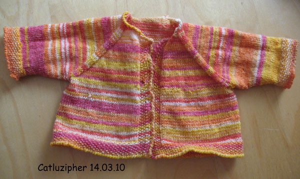 Ach ja, ich habe die Jacke am Stück gestrickt, weil es mir zu doof war, die Raglanabnahmen am Ende noch zusammenzunähen.
