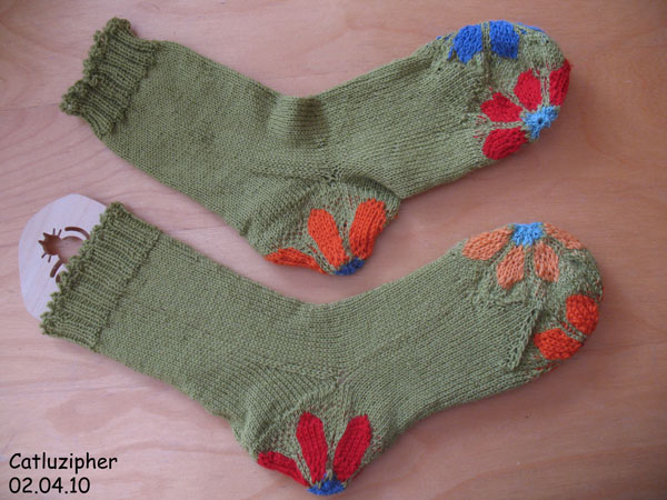 Auf jeden Fall sind die Socken wieder sehr kurzweilig beim Stricken gewesen. Beate hat bei jedem ihrer Entwürfe irgendwo etwas faszinierendes eingebaut – bei diesem Paar ist es der Aufbau, der mich immer wieder in seinen Bann gezogen hat.
