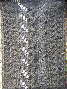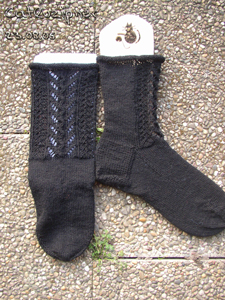 leuchten nun diese neue Socken für meine Schwiegeroma. Schon vor Monaten hat sie sie in Auftrag gegeben und bis jetzt habe ich sie vor mir hergeschoben. Schwarz stricke ich nun mal äußerst ungern und 3 – fädig schwarz ist so der Gipfel der Unbeliebtheit beim Sockenstricken. Jedenfalls bei mir. Damit es nicht ganz so langweilig wurde habe ich gleich damit gedroht, den Socken einen Lochmusterstreifen zu verpassen. Fündig wurde ich in Omas Strickgeheimnissen.