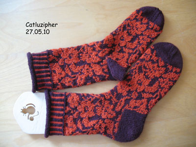 oder so ähnlich. Manche Wünsche muss man einfach erfüllen und Beate wünsche sich diese Socken, Zeitraum egal. Nun ja, solche Auftragsstrickerei kommt mir zu pass, dennunter Zeitdruck stricke ich ungern.