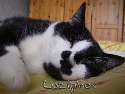Und weil manche Leute der Meinung sind, bei uns sei grundsätzlich alles blau tritt Luzi den Gegenbeweis an – nachdem er sich in unser Bett geschlichen hatte um dort den GANZEN Tag selig zu verschlummern.