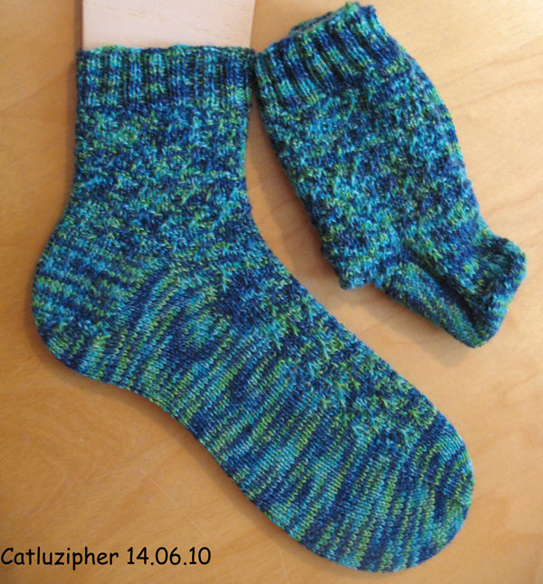 Die Socken sind fertig :-))) und da ich gleich vier Muster zur Auswahl hatte, habe ich etwas länger darüber gebrütet, welches ich diesem Farbentraum gönne.
