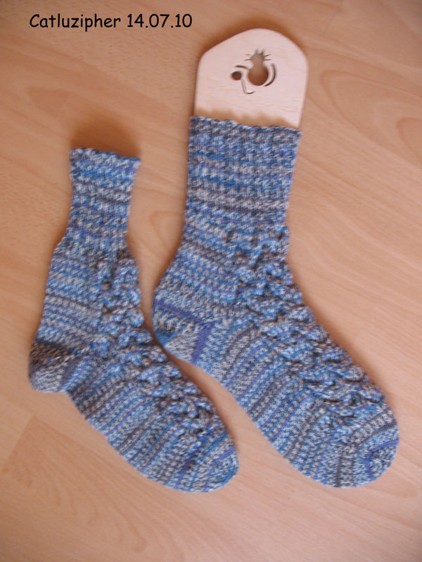 Bei diesen Socken durfte ich auch noch ein bisschen rechnen, da das Muster für eine dickere Wolle ausgelegt war, aber es passt, sitzt und wackelt.