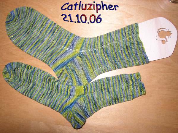 Zur Feier des 100. Sockenpaares habe ich mir aus meinem Wollvorrat etwas besonderes gegönnt: Wollmeise Wellensittichvogelfeder. Mir gefällt erstklassig, was da entstanden ist.
