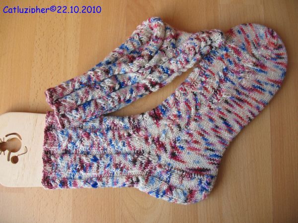 musste es auch bei mir geben und obwohl ich eigentlich einen Stapel abzuarbeitender Socken habe, musste ich mir einfach die Zeit nehmen und diese Socken stricken. Wie gut, dass ich unpedinkt auch noch ein Knäuel meiner selbstgefärbten Wolle ausprobieren musste 🙂