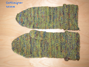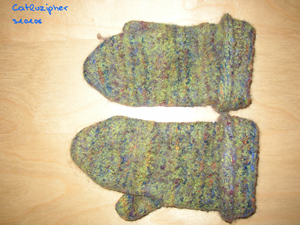 Gestern war ein wolltechnisch ein sehr zwiespältiger Tag: Zwar sind die Handschuhe für meine Mutter fertig geworden – sie sehen auch zweifelsohne sehr schön aus – aaaaber leider, leider sind sie beim Filzen soooooooooo klein geworden, dass ich nicht mal reinkomme. 🙁 *grummel*
