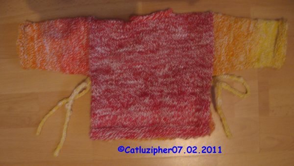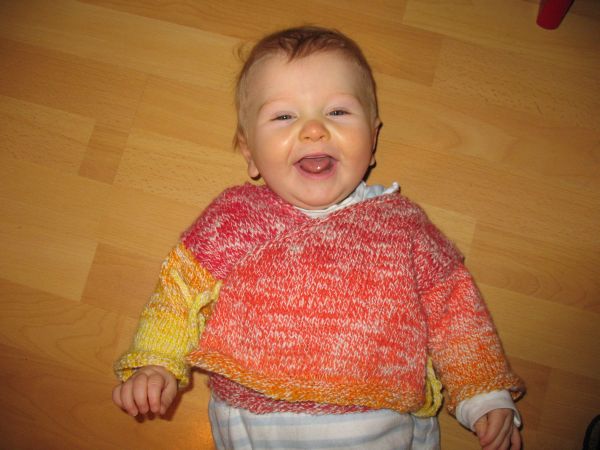 Ein bisschen was war wie immer zu ändern – so gefiel es mir nicht, dass die Seiten ab dem Ärmel komplett offen waren. Ich habe sie einfach zugenäht – denn es soll ja ein Kleidungsstück und kein Schmuckstück sein. Ich hoffe, meine Musterauswahl gefällt der zukünftigen Besitzerin des Pullis.
