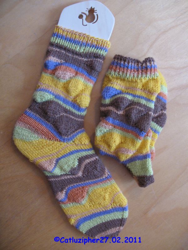 Als ich diese Socken zeigte, kam die Anfrage, ob ich noch ein Paar stricken könnte – in Größe 34/35. Klar, kann ich das und rechnete und dachte nach und rechnete um und dachte nach und strickte unterdes die erste Socke. Als sie fertig war, war mir klar, wie ich es machten musste, ribbelte und strickte neu. und das sind sie – die umgerechneten Lizard – Ridge socken – und für die, die es brauchen können: