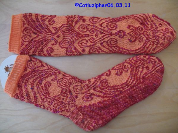 Die Strickperlen Aglasterhausen haben zum Maorisocken – Knit – Along aufgerufen und so entstanden in den letzten Wochen abendlich zwanzig bis dreißig Reihen an diesem Werk. Mir gefallen sie außerordentlich und da es mir zu heikel war, die Damensocken zu stricken, weil sie bei mir oft leicht eng werden, habe ich mich für die Herrenvariante entschieden und werde sie meinem Vater vermachen, der auf bunte und insbesondere ROTE Socken steht.
