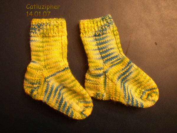 So nebenher ist noch das Babysockenpaar für die Mitbewohnerin meiner Schwester entstanden – diesmal hat mein Schwesterchen die Füße des Babys ausmessen lassen.