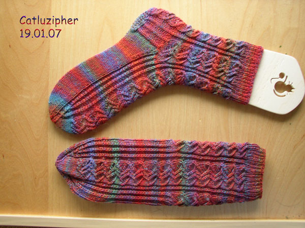 Um meine neuen Nadeln und meine Abowolle anzustricken, musste ich erst mein aktuelles Paar fertig stricken. Zum Glück waren mir Wolle und Muster sehr sympathisch, so dass ich gerne daran strickte.
