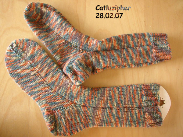 und es sind dieses Mal ganz einfache Socken mit Dehnungsfuge. Irgendwie ist mir kein Muster eingefallen, dass zu dieser Musterung gepasst hätte.