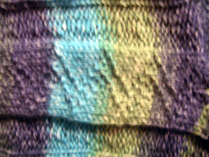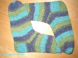 Dann wäre da noch ein Paar Socken mit einem kleinen Rechts – Links – Muster aus einem wunderschönen Opalknäuelchen.