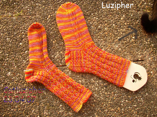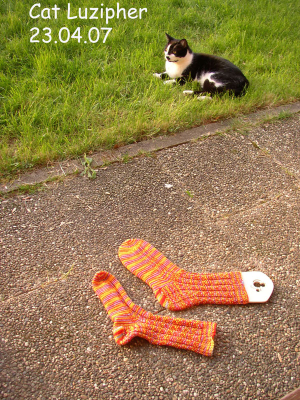 Auf dem Foto sieht man auch einen Teil unseres Luziphers. Der wollte einfach nicht weggehen. Wenigstens hat er sich zu diesem Zeitpunkt nicht mehr auf den Socken gefläzt. Dass ich ihm nichts angetan habe, sieht man dann auf dem nächsten Bild.