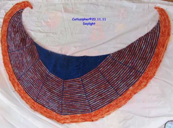 Das gute Stück ließ sich wunderbar nebenbei stricken nur in den letzten Reihen habe ich sehr geflucht, da sind mir in einer Reihe zwei Nadeln abgebrochen, so dass ich auf Metallnadeln umsteigen musste.