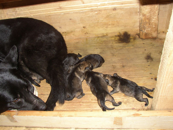 Die Moppel haben noch die Augen und die Ohren zu und sehen eher nach Boxer als nach Schäferhund aus.