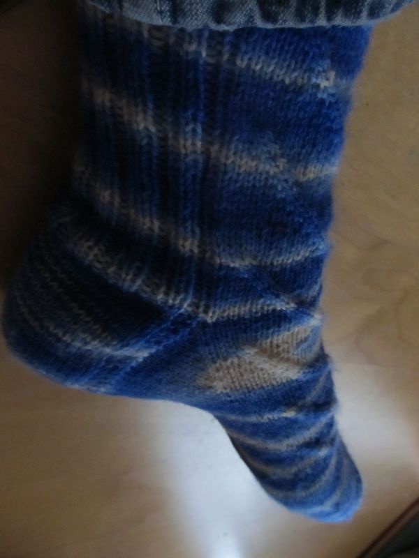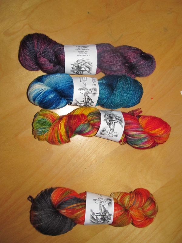 Drei Sackdrachen und ein Strang von meiner Wichtelpartnerin 😀 Der ist natürlich der allerschönste… und damit nicht genug gabs noch ein paar barbarablaue Socken, die wie an die Füße gestrickt sitzen 😀