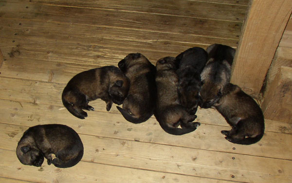 einmal der ganze Schwung – die Mutter macht gerade Pause im Garten. Wenn alles ruhig ist in der Welpenbox,