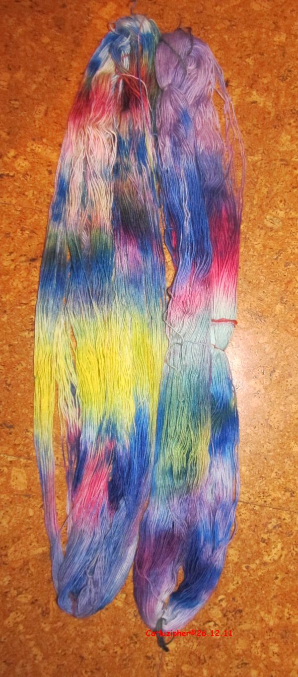 Lukas hat gefärbt – gefärbt für seine beiden Erzieherinnen, die beide stricken: