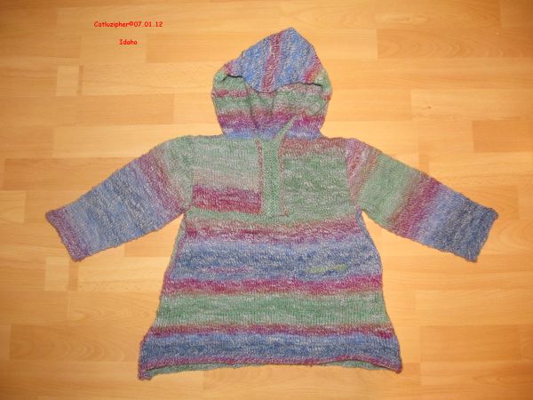 und daraus während der Weihnachtsferien dieser Pullover für den großen kleinen Mann. Etwas reichlich ist er noch und eigentlich weiß ich auch, dass er eher klein und schmächtig für sein Alter ist – nun denn, dann passt er auch noch im nächsten Winter.