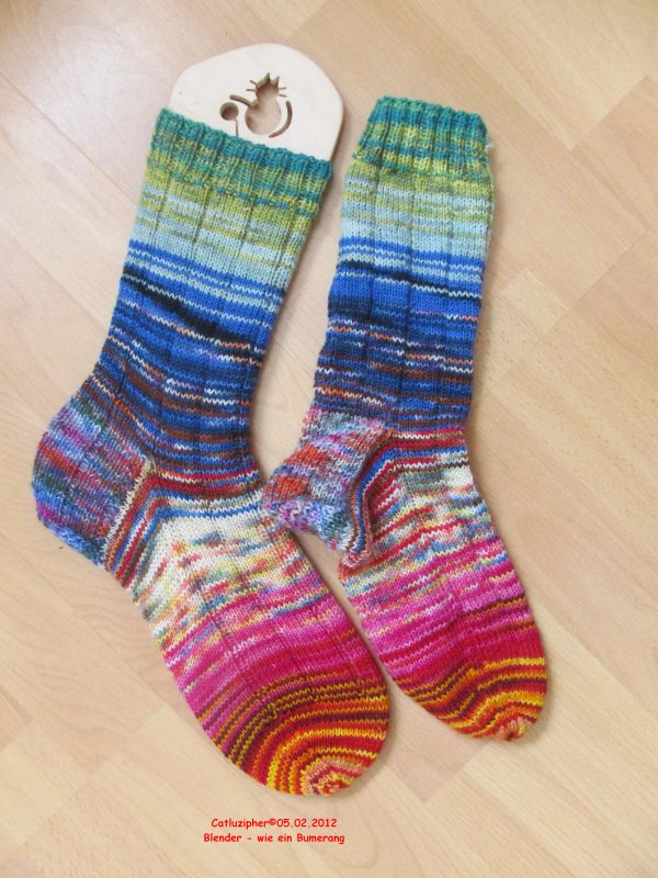 Es war Sommer, es war unglaublich warm und meine Nachbarin schenkte mir eine große Tüte mit handgefärbten Sockenwollresten. Ein Teil davon geht jetzt als Bumerang zu ihr zurück und zwar in dieser Form 🙂