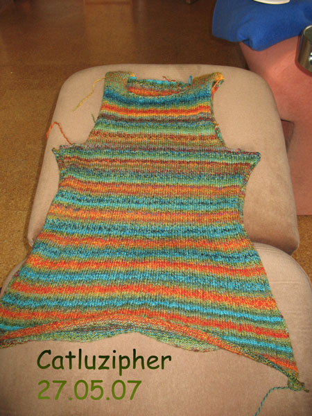 Beim Großprojekt geht es auch voran. Gestern ist es mir endlich beim dritten Versuch gelungen, die Schulternähte des Pullis zu schließen – es gibt unendlich viele Möglichkeiten diese beiden Teile falsch zusammenzustricken. *grummelundmotz*