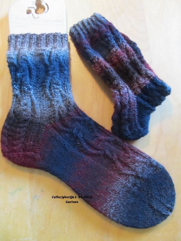 Für diese Socken habe ich einen Zauberball ausgesucht und dazu ein Zopfmuster von Wollklabauter. Auch wennd ie Strickschrift sehr aufwendig aussah, ließen sich die Socken gut stricken und nach einem Mustersatz war auch die Musterlogik klar.