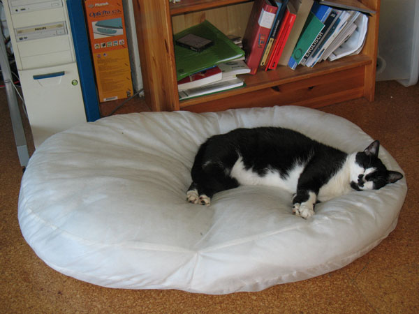 – dann ist das neue Körbchen wieder bezogen und bereit für Jojo. Iska kommt schon am Donnerstag zurück und Jojo holen wir dann am Freitag. Da am Freitagmorgen niemand zu Hause ist, scheint es uns sinnvoller, ihr noch den Tag bei den Geschwistern zu gönnen.