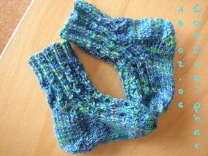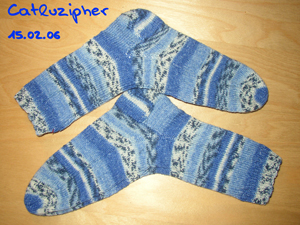 Weiter gehts mit ein paar Paar Socken. Für ein Geburtstagssockenpaar musste ich einen meiner Schätze opfern – aber Nora wünschte sich blaue Socken, die zu Jeans passen. Außerdem sollen sie ja auch noch schön sein.