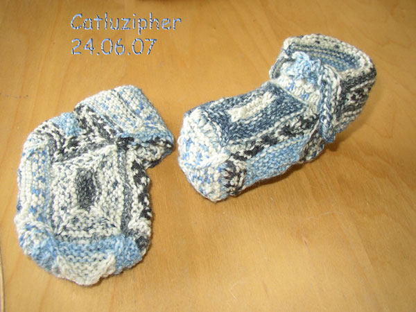 sind die Socken und Werke dieser Woche. Aber die Woche stand mehr im Zeichen anderer Dinge und so blieb diese Aufgabe fürs Wochenende.Eigentlich wäre ich heute mit Iska und Matthias aufs Agilityturnier gefahren, aber das Wetter war nach den Wettervorhersagen weniger geeignet, den Tag mit einem Welpen im Freien zu verbringen. Außerdem machte die leichte poröse Neigung unseres Hundenachwuchses eine gründliche Reinigung der Wohnung notwendig und auch diverse Waschmaschinen warteten noch auf ihre Befüllung. Wenigstens werden so die Berichtzeugnisse nun doch schon heute fertig und ich habe diese Dinger aus dem Kopf.