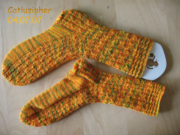 Es ist der erste Strang aus dem Herbstabo von Kirsten. Nun muss ich nur noch darauf achten, dass meine Schwester mir die Socken nicht abschwatzt. Sie sind ja schlussendlich eindeutig orange *grins*