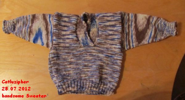 habe ich für den kleinen Mann gestrickt – die Wolle dazu habe ich auf dem Bodenseetreffen erstanden und mich dann grob an die Anleitung gehalten – aber nur gaaaanz grob.