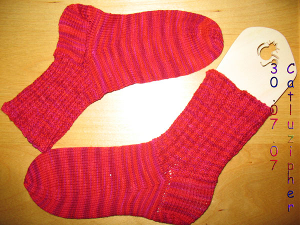wurden heute die Socken fertig -ein Paar ist das ehemalige Schulsockenpaar, dem noch der Fuß fehlte.Die Socken sind für meine Nichte. Sie hat sich die Wolle im letzten Sommer selbst ausgesucht und sie hat locker für ein zweites Paar gereicht.