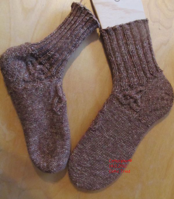 net viel aber immerhin. So sind die Socken meines Sockenclubs schon ein paar Tage fertig, und ich bin sicher, man hat mich ein paar Kilometer weiter im Schwabenland bei Annie fluchen hören… und auch die Rauchwölkchen gesichtet. Das Muater war nicht besonders schwer, aber wer lesen kann ist klar im Vorteil und so saß ich tatsächlich am ersten Spickel 1,5 Stunden und ribbelte DREI Mal das Ganze. Der Rest der Socken ging dann wie von selbst, wobei die Sockenform für mich nicht so der Hit ist. Es gibt viele Fäden zu vernähen usw. usw. Ich hätte die Zöpfe, die in der Tat wunderschön sind, in ein “normales” Paar Socken integriert.