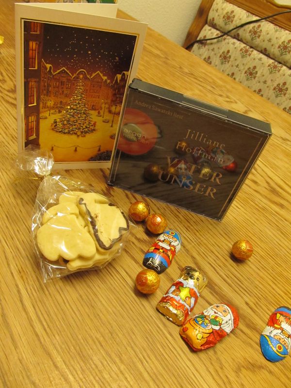 eine ganze Menge schöner Überraschungen fand ich ihn dem Umschlag und konnte so schon am frühen Morgen in Schokolade und Plätzchen schwelgen und in einer ruhigen Minute werde ich mich dann dem Hörbuch widmen. Liebe Marie vielen Dank für die tolle Überraschung und die netten Worte.