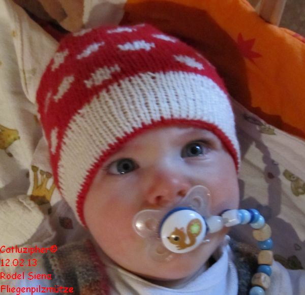 Auch fertig wurde die Ersatzmütze für Tim. Anfangs hatte ich eine rote Mütze mit weißen Tupfen zu seiner Jacke, inzwischen ist diese aber zu klein. Also musste was neues her und beim Stricken des Wurms kam mir die Idee, eine Beanie in Doppelstrick für Tim zu fertigen – so ein bisschen wie ein Fliegenpilz. Lukas sagt ja immer, das Dim unser kleiner Fliegenpilz ist.