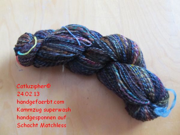 Auch fertig ist der Erinnerungsstrang an das Fest bei Drachenwolle im September – ein wunderschöner Kammzug von handgefaerbt.com
