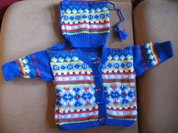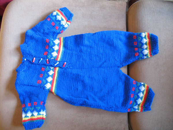 Auch war mir die Jaquardjacke mit passendem Mützchen noch in Erinnerung, aber ich wusste nicht mehr, dass da auch noch ein Strampler dazugehörte.